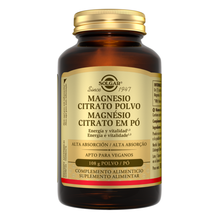 Solgar® Magnesio Citrato en Polvo es una fórmula de magnesio altamente biodisponible, diseñada para que el organismo la absorba y utilice de forma eficiente. Su formato en polvo facilita una toma cómoda y rápida, ideal para quienes buscan incorporar este mineral esencial a su rutina diaria sin necesidad de comprimidos.